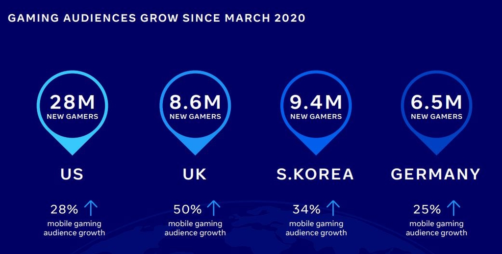 페이스북이 12일 펴낸 '2021년 게임 마케팅 인사이트 보고서'에 따르면 지난해 7월 기준 국내 신규 모바일 게임 이용자는 코로나19가 정점을 찍은 작년 3월 대비 34% 늘어난 940만 명으로 집계됐다.