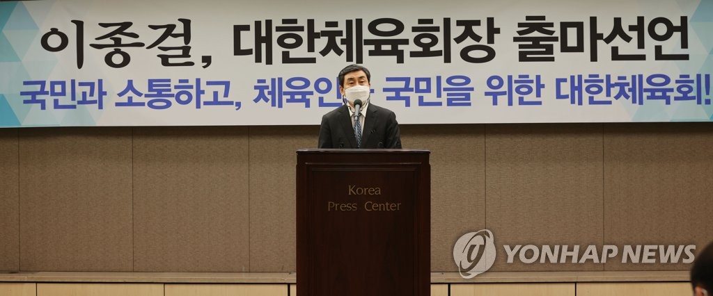 (서울=연합뉴스) 장현구 기자 = 이종걸(63) 민족화해협력범국민협의회(이하 민화협) 대표 상임의장이 41대 대한체육회장 선거 출마를 공식 선언했다.