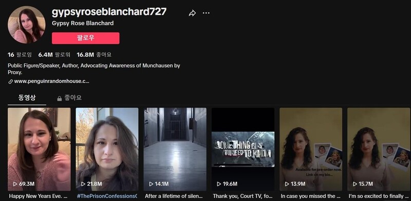 | ▲ 집시 로즈 블랜처드의 틱톡 계정 [틱톡 웹사이트 캡처. 재판매 및 DB 금지] |