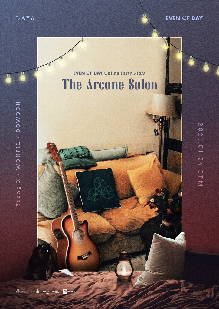 밴드 데이식스(DAY6)의 유닛 '이븐 오브 데이'(Even of Day)는 같은 날 브이라이브에서 온라인 음악 파티 '디 아케인 살롱'(The Arcane Salon)로 팬들을 만난다.
