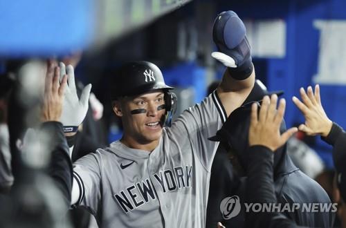 (서울=연합뉴스) 천병혁 기자 = 미국프로야구 메이저리그(MLB) 역사상 6번째로 한 시즌 60홈런을 달성한 에런 저지(30·뉴욕 양키스)가 이제 타격 3관왕을 향해 질주하고 있다.