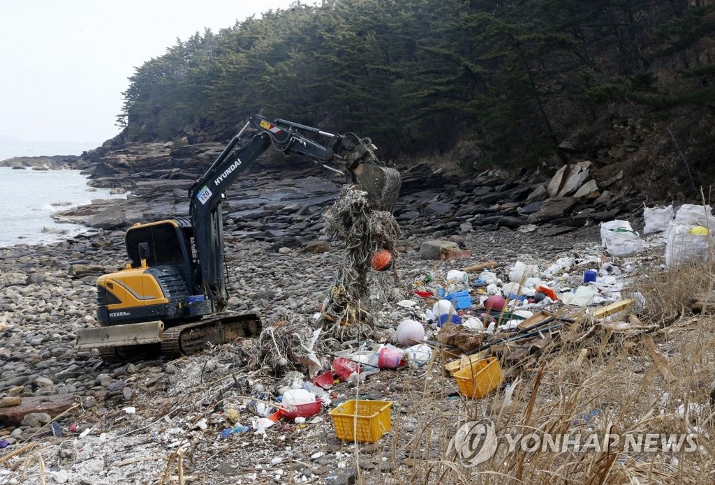 | ▲ 태안 해변에 떠밀려온 해양쓰레기 지난 3월 태안 해변에서 진행된 쓰레기 수거 작업 [연합뉴스 자료사진] |