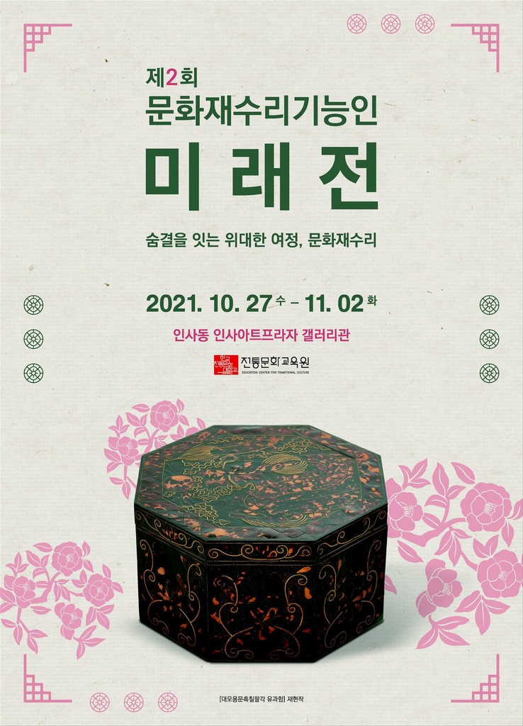 ▲ 전통문화대 '문화재수리기능인 미래전' = 한국전통문화대학교 전통문화교육원은 27일부터 다음 달 2일까지 종로구 인사아트프라자에서 '문화재수리기능인 미래전'을 연다.