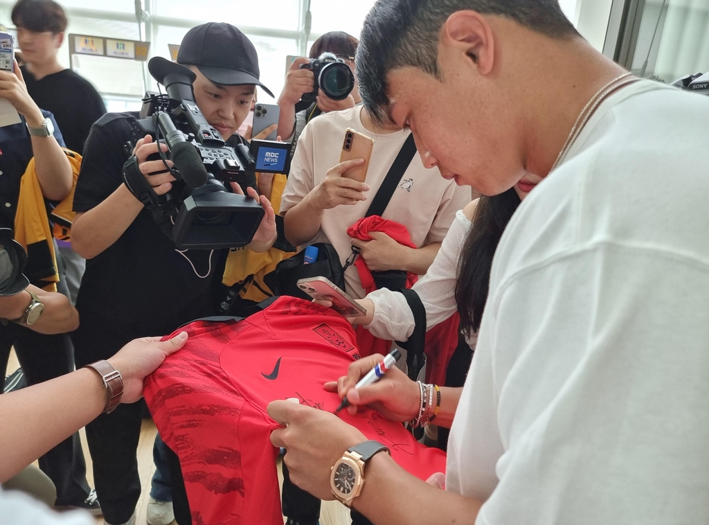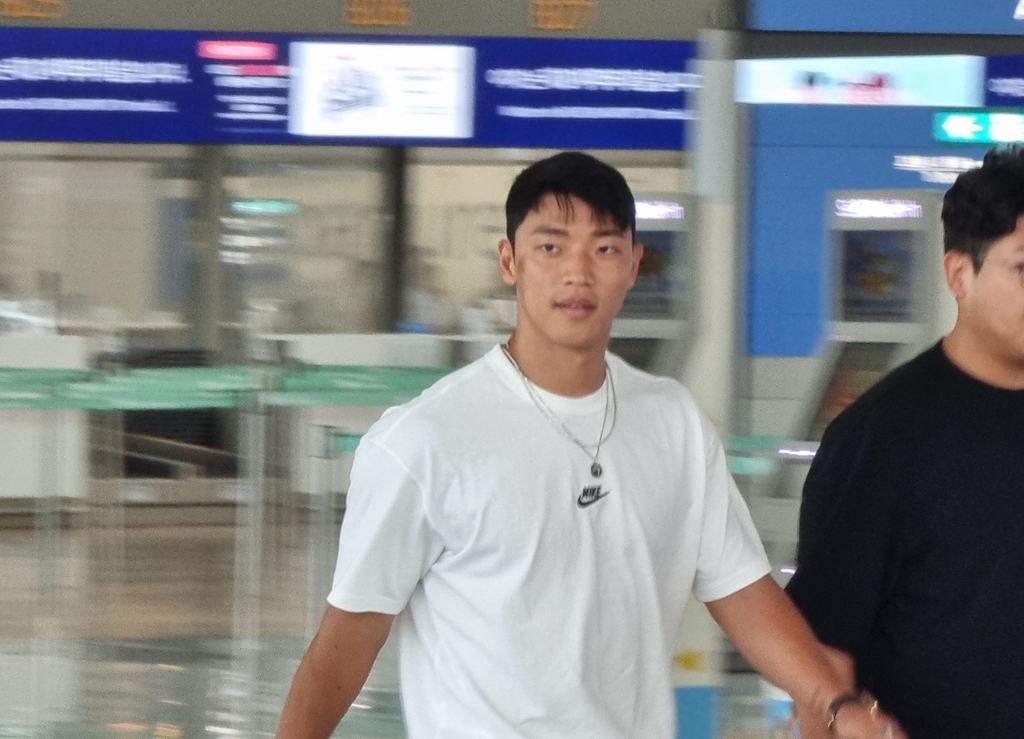 이후 좌중을 향해 손짓으로 마지막 인사를 전한 황희찬은 영국 런던행 비행편에 탑승하기 위해 수속 게이트로 향했다.