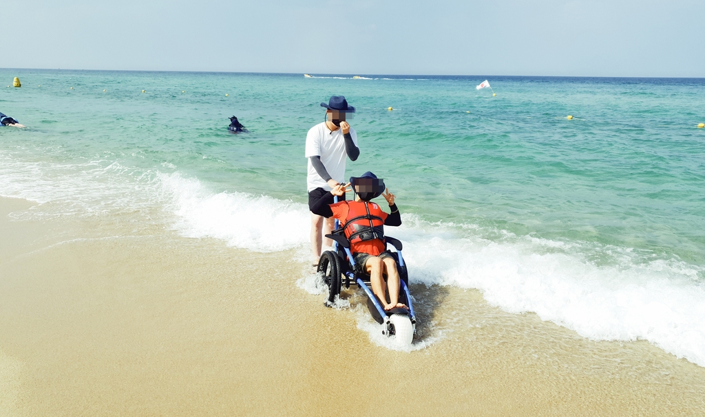 수상 휠체어는 평소 해수욕장을 이용하지 못했던 휠체어 이용 장애인이나 노약자 등 보행 약자를 대상으로 입수 및 해변 산책 등을 체험할 수 있는 장비다.