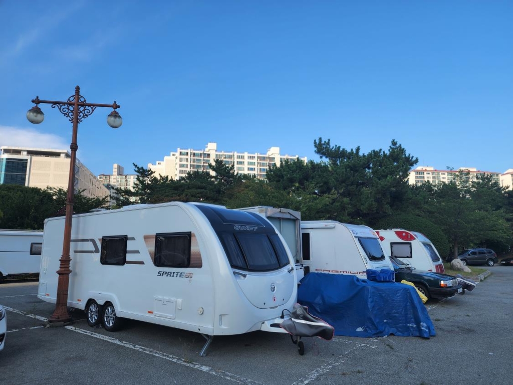 | ▲ 요트경기장에 주차된 카라반과 캠핑카 [손형주 기자] |