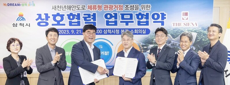 협약을 통해 삼척시와 시에나 삼척은 호텔, 리조트, 풀빌라 등 체류형 관광숙박시설 조성과 오션 트레일, 레포츠 등 관광·레저 기반 구축 그리고 경관·휴먼·체류를 결합한 삼척 관광 연결거점의 정라유원지 개발 전반에 대해 협력한다.
