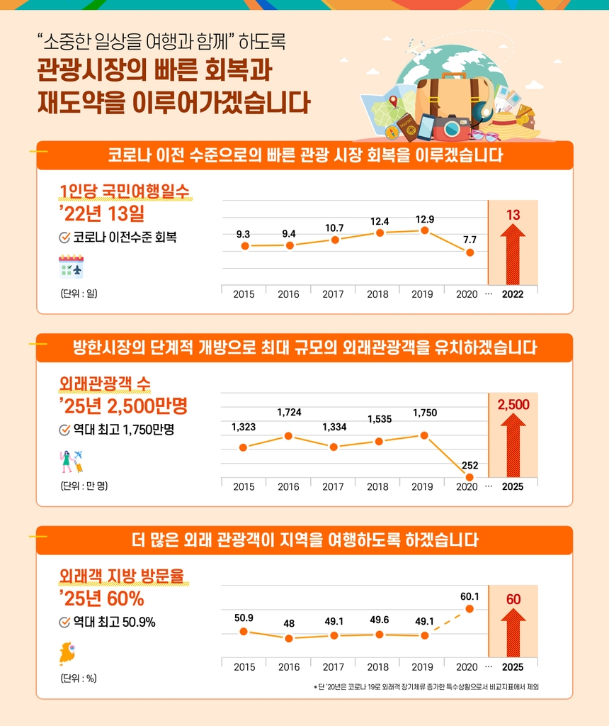 정부는 내년 말까지 국내관광 시장이 코로나19 이전 수준을 회복하는 것을 목표로 내세웠다.