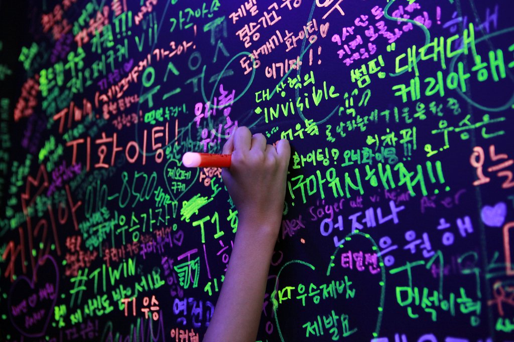 | ▲ LCK 선수들 향해 남기는 응원 메시지 (대전=연합뉴스) 김주환 기자 = 20일 리그 오브 레전드(LoL) 챔피언스 코리아(LCK) 서머 결승전을 앞두고 대전컨벤션센터 제1전시장에서 열린 '팬 페스타' 현장에서 한 관람객이 선수들에게 응원 메시지를 남기고 있다. 2023.8.20 jujuk@yna.co.kr |