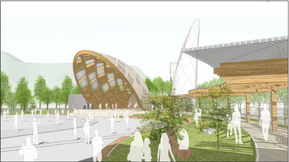 공연장 규모는 지상 2층 규모로 야외공연, 휴게, 전망 등 다양한 목재 문화 체험이 가능한 복합시설물로 조성된다.