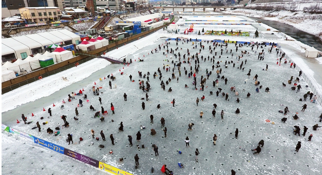 (홍천=연합뉴스) 이상학 기자 = 강원 홍천군 홍천읍에서 열리고 있는 '제11회 홍천강 꽁꽁축제'가 순항 중이다.
