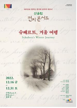 슈베르트의 이런 예술 세계를 음악과 연기로 풀어낸 산울림 편지콘서트 '슈베르트, 겨울여행'이 16∼31일 서울 마포구 소극장 산울림에서 열린다.
