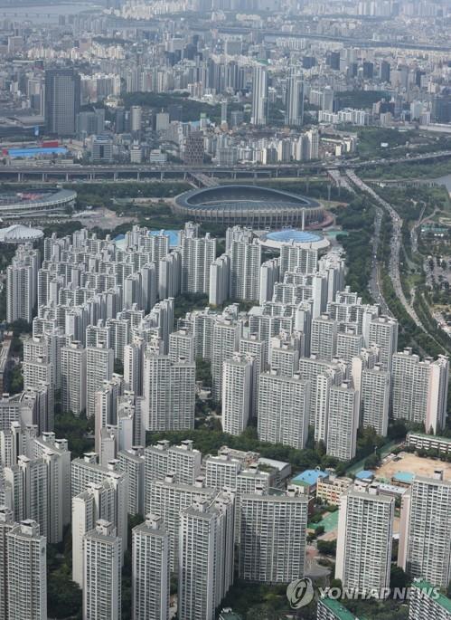 | ▲ This file photo, taken from the observatory of the 123-story Lotte World Tower in Seoul on Aug. 18, 2021, shows apartment complexes in the South Korean capital. (Yonhap) |