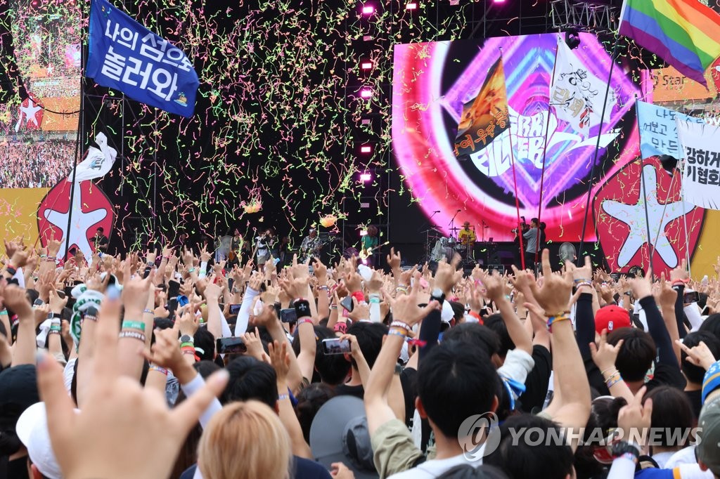 | ▲ In this file photo, music fans attend a show by the South Korean rock band Cherry Filter during the 2023 Incheon Pentaport Rock Festival in the western city of Incheon on Aug. 6, 2023. (Yonhap) |