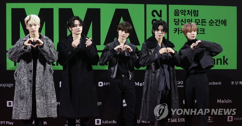 | ▲ 투모로우바이투게더, 단체 하트 (서울=연합뉴스) 진연수 기자 = 그룹 투모로우바이투게더가 2022년 11월 26일 오후 서울 구로구 고척스카이돔에서 열린 2022 멜론뮤직어워드(MMA) 레드카펫 행사에서 포즈를 취하고 있다. 2022.11.26 jin90@yna.co.kr |
