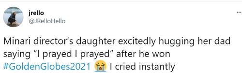 | ▲ 미나리 정 감독과 딸의 모습을 보고 눈물이 났다는 한 네티즌 [트위터 게시물 캡처·재판매 및 DB 금지] |
