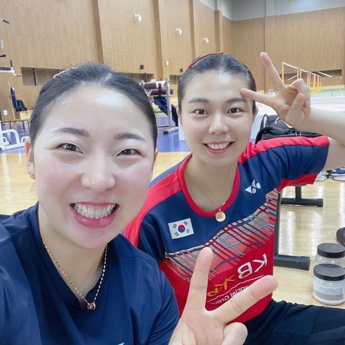 | ▲ South Korean badminton players Kong Hee-yong (L) and Kim So-yeong pose for a selfie at the Jincheon National Training Center in Jincheon, 90 kilometers south of Seoul, in this photo provided by the players on June 30, 2021. (PHOTO NOT FOR SALE) (Yonhap) |