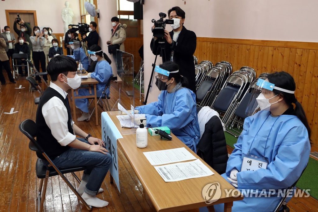 | ▲ Officials carry out a drill for COVID-19 vaccinations in Gwangju, 330 kilometers south of Seoul, on Feb. 23, 2021. (Yonhap) |
