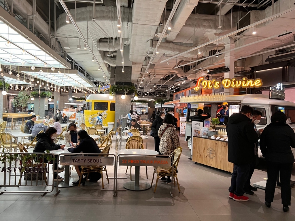 근처 백화점인 더현대서울은 실내여서인지 손님들이 좀 있었다. 지하 식품관에는 늦은 아침 또는 이른 점심을 먹는 사람들이 눈에 띄었다.