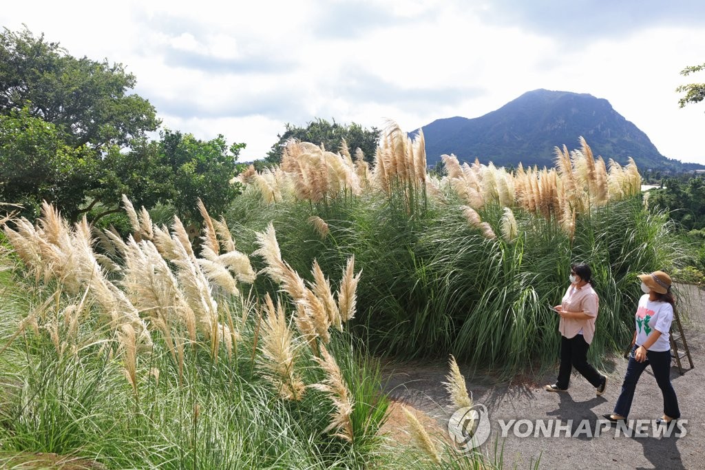 | ▲ '가을이 성큼'[연합뉴스 자료사진] (서귀포=연합뉴스) 박지호 기자 = 29일 오전 제주 서귀포시 안덕면 카페 마노르블랑 정원에 억새의 일종인 팜파스그라스의 꽃이 활짝 피어 성큼 다가온 가을을 느끼게 하고 있다. 2021.8.29 jihopark@yna.co.kr |
