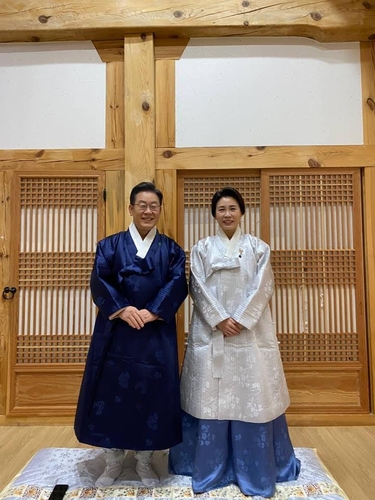 이 후보는 김씨와 함께 한복을 갖춰입고 세배 하는 사진도 게시했다.
