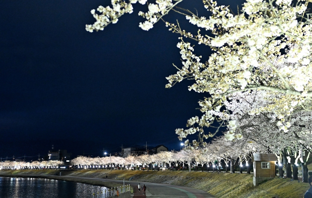 1일 김천시에 따르면 시는 13일까지 벚꽃 개화 시기에 맞춰 조각공원에서 강변공원까지 2.1㎞ 구간 직지천 벚꽃길, 교동 연화지 일대에 경관조명을 켜 벚꽃이 빛나는 밤거리를 연출한다.