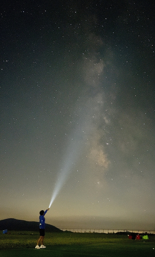 (태백=연합뉴스) 배연호 기자 = 평균 해발 900m 고원 도시 강원 태백시의 맑고 깨끗한 밤하늘을 상징하는 은하수가 시민과 관광객의 인증샷으로 기록됐다.