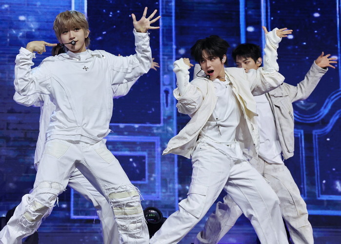 South Korean boy group AHOF performs during a showcase for the group's second mini album "The Passage" in Seoul on Nov. 4, 2025. (Yonhap)