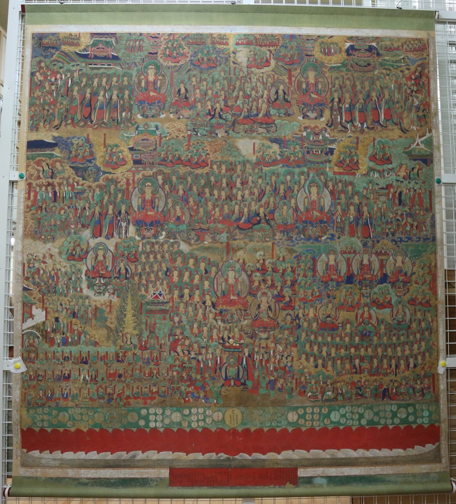 전시실에 있는 모사본을 정면에서 볼 때는 몰랐는데 철제 프레임에 고정된 원본을 측면에서 보니 비단 폭에 채색된 보현보살과 형형색색 등장인물이 더욱 입체감 있게 느껴졌다.