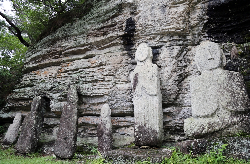 널빤지처럼 바위벽에 기대고 있는 불상은 권위와는 다소 거리가 있으며 크기도 제각각이라서 개성이 넘친다.