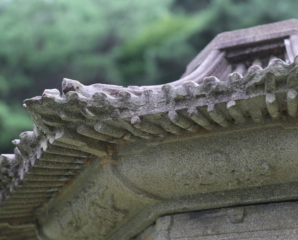 특히 눈길을 끄는 것은 지붕이다. 암키와와 수키와의 조합을 형상화했고 서까래까지 새겼다. 돌을 쪼아서 만들었다는 것이 잘 실감 나지 않을 정도다.