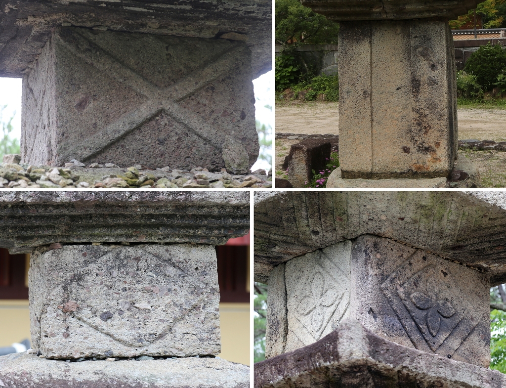 윗돌은 2단으로 구성되는데 위에는 악기를 연주하는 극락조인 가릉빈가(伽陵頻迦)의 모습이 개성 있게 새겨져 있다. 기둥을 소반의 다리처럼 곡선으로 표현해 손에 쥘 수 있을 것 같은 느낌을 준다.