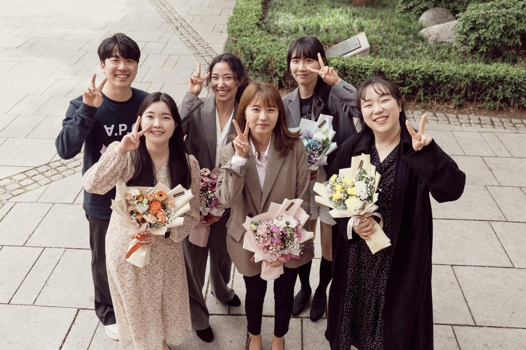 | ▲ 스테이지업 최종 수상자 (서울=연합뉴스) 지난달 2일 진행된 '2023 스테이지업 최종 수상자 오리엔테이션'에 참여한 창작자들이 축하 꽃다발을 들고 포즈를 취하고 있다. 왼쪽부터 강홍준, 윤지영, 석혜미, 강소연, 임예진, 이다민 작가·작곡가. 2023.06.07 [CJ문화재단 제공, 재판매 및 DB 금지] |