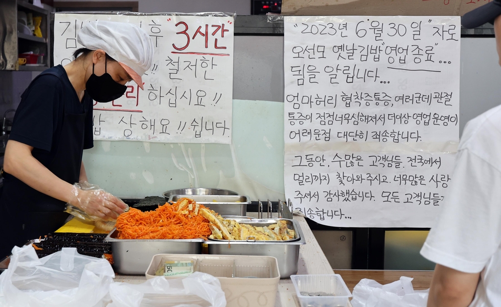 그러면서 "단체 주문이 있는 날이면 자정부터 나와서 하루 종일 김밥을 마느라 사장님이 손목이 아프다는 소리를 자주 했었다"며 "문을 닫고 나면 이 김밥이 참 그리울 것 같다"고 덧붙였다.
