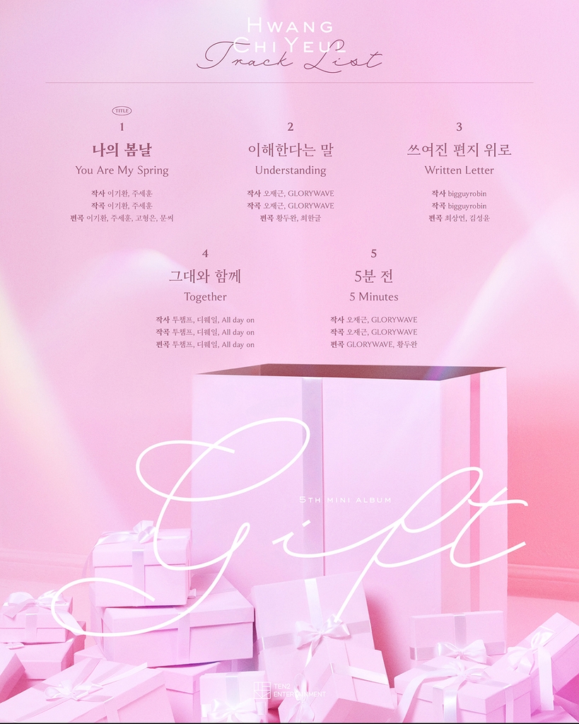 (서울=연합뉴스) 임지우 기자 = ▲ 황치열 미니 5집 '기프트' 발매 = 가수 황치열이 다음 달 1일 미니 5집 '기프트'(GIFT)를 발매한다고 소속사 텐투엔터테인먼트가 15일 밝혔다.