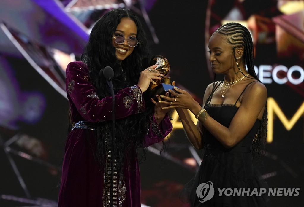 | ▲ 제63회 그래미어워즈에서 올해의 노래상을 받은 싱어송라이터 허. [AP=연합뉴스] |