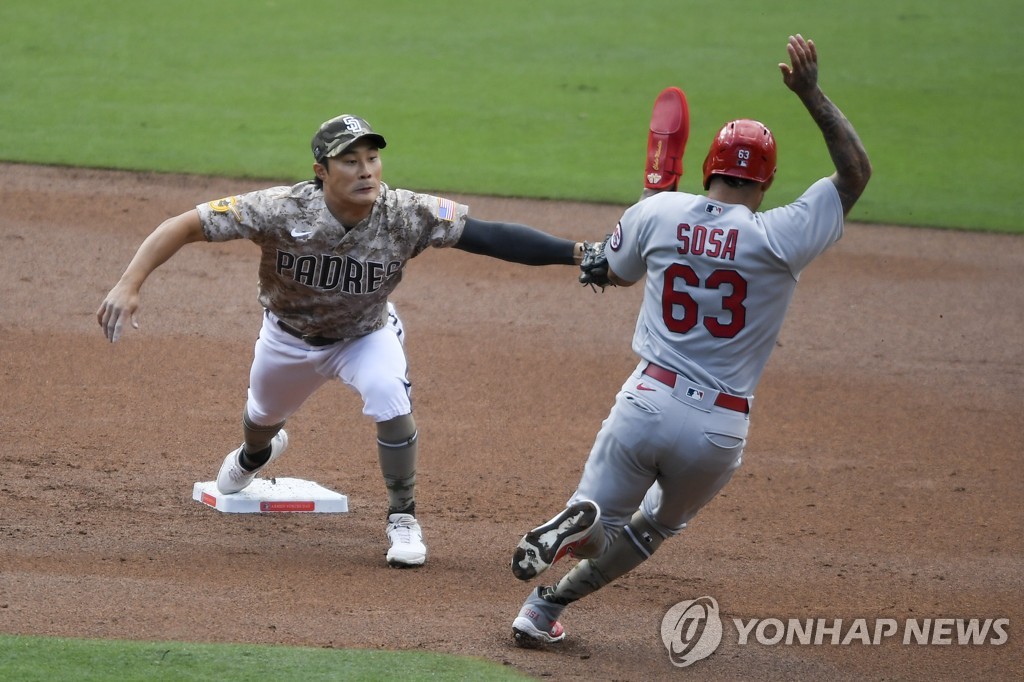 다음 타자 김광현은 희생번트를 시도했지만, 오히려 자신이 1루 주자가 됐다. 김하성은 김광현의 번트 타구를 잡은 3루수 매니 마차도와 호흡을 맞춰 주자 소사를 2루에서 포스아웃시켰다.