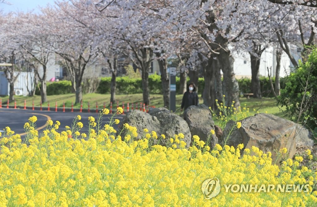 | ▲ '봄기운 물씬' (제주=연합뉴스) 지난 18일 오후 제주시 종합운동장 인근에 유채꽃과 벚꽃이 화사하게 피어 오가는 이들의 눈길을 끌고 있다. [연합뉴스 자료사진] |