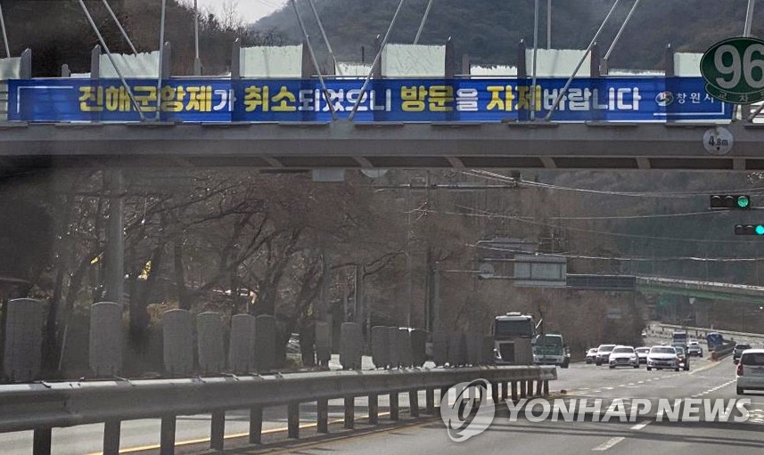 창원시는 진해구 주요 진입도로마다 '군항제가 취소되었으니 방문을 자제 바랍니다'라고 당부하는 현수막을 내걸었다.