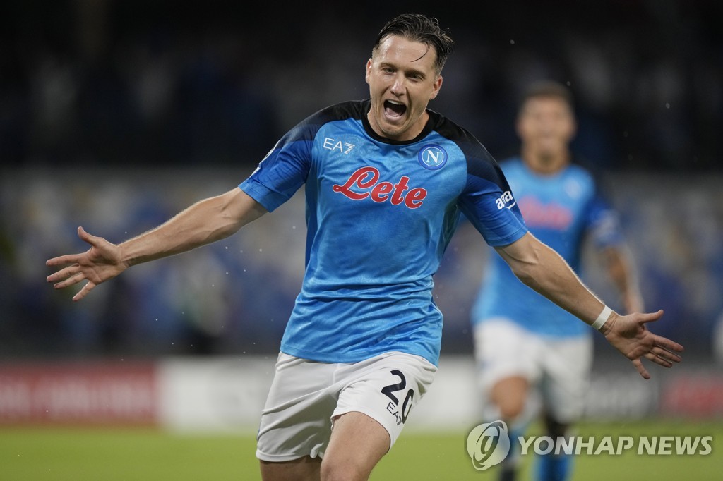 | ▲ 선제골 넣고 기뻐하는 나폴리의 피오트르 지엘린스키 [AP=연합뉴스] |