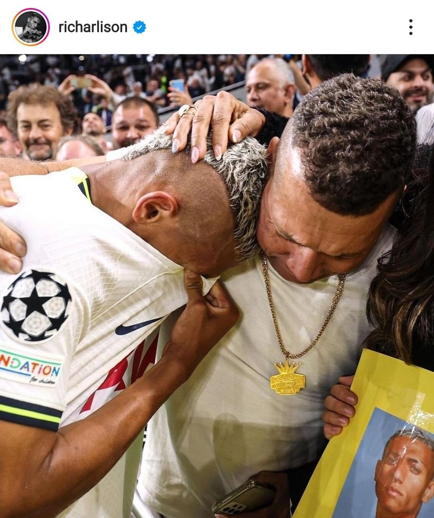 지난 시즌까지 EPL 에버턴에서 뛰다 이번 시즌 토트넘으로 옮겨 이날 UCL 데뷔전을 치른 브라질 국가대표 히샤를리송은 아버지 등 가족이 보는 앞에서 팀 승리를 이끈 뒤 기쁨의 눈물을 흘렸다.