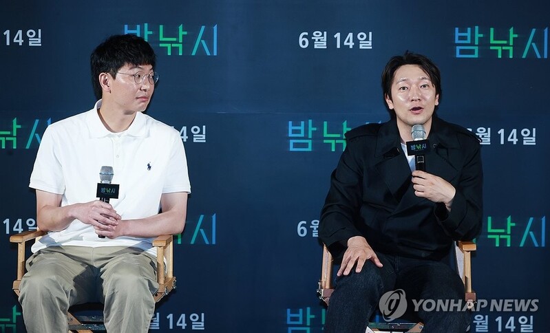 | ▲ 단편 스릴러 '밤낚시' 주연배우와 감독 (서울=연합뉴스) 진연수 기자 = 배우 손석구(오른쪽)와 문병곤 감독이 11일 오후 서울 용산구 CGV용산아이파크몰에서 열린 단편영화 '밤낚시' 언론시사회 및 기자간담회에서 질문에 답하고 있다. 2024.6.11 jin90@yna.co.kr |