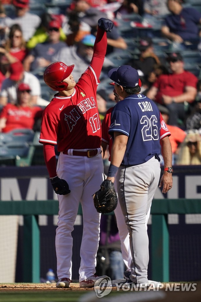 (서울=연합뉴스) 김경윤 기자 = 탬파베이 레이스의 최지만(31)이 '야구천재' 오타니 쇼헤이(로스앤젤레스 에인절스)와 투타 맞대결에서 완패했다.