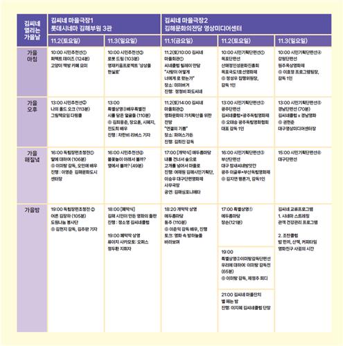 (김해=연합뉴스) 최병길 기자 = 김해문화관광재단 영상미디어센터는 시민이 기획·운영·후원하는 '김해시민영화제'(이하 '김씨네')가 내달 1일 오후 5시 김해문화의전당 애두름마당에서 개막한다고 25일 밝혔다.