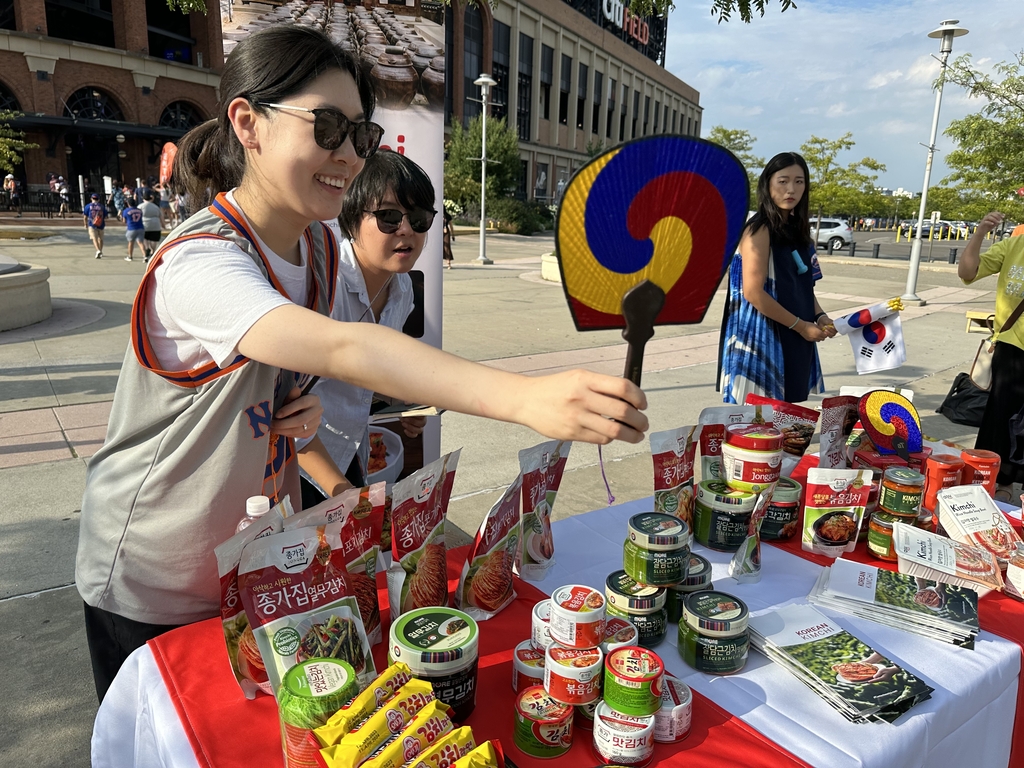 | ▲ 뉴욕 메츠 홈구장에 마련된 한국음식 홍보코너 (뉴욕=연합뉴스) 이지헌 특파원 = 14일(현지시간) '2023 한국의 밤' 행사가 열린 뉴욕 메츠 홈구장 야외에 설치된 한국음식 홍보 코너. 2023.8.15 photo@yna.co.kr |