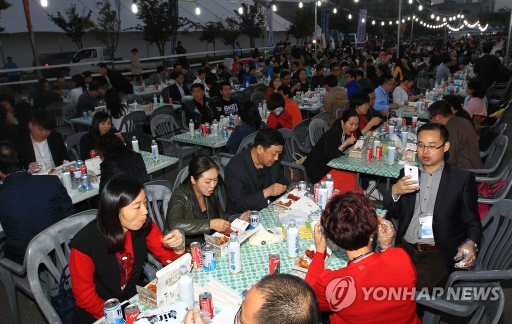 | ▲ 중국인 관광객 치맥파티 (속초=연합뉴스) 속초 청초호 유원지 엑스포공원에서 개최된 '치맥파티'에 참가한 중국인 행사 참가자와 관광객들이 치킨과 맥주를 즐기고 있는 모습. [연합뉴스 자료사진] |