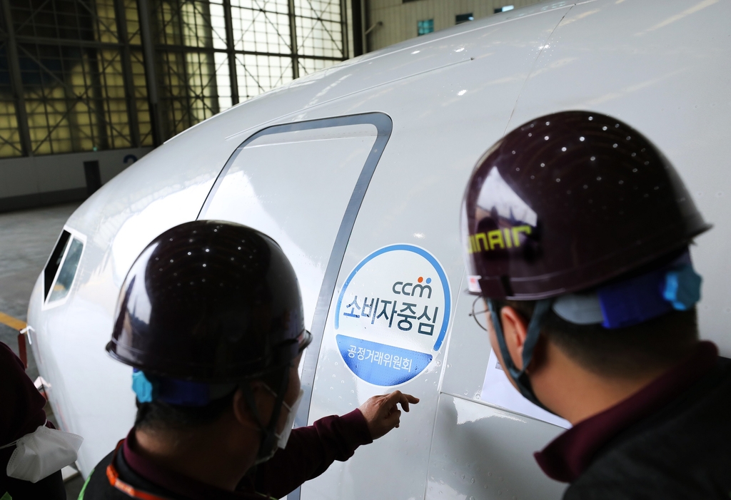 (서울=연합뉴스) 임성호 기자 = 진에어[272450]는 지난 29일 B737-800 항공기 동체 출입문 옆에 소비자중심경영(CCM) 인증 마크를 부착했다고 30일 밝혔다.
