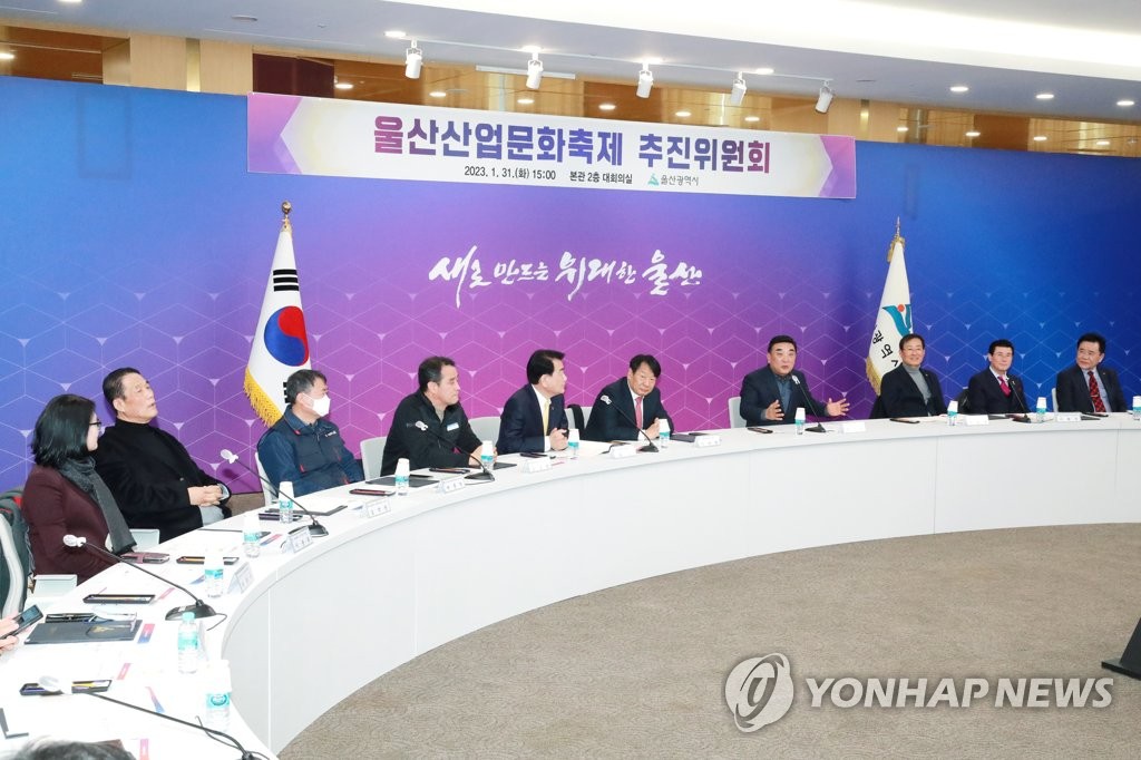 | ▲ 지난 1월 31일 울산시청 대회의실에서 김두겸 울산시장과 울산산업문화축제 추진위원들이 추진위원회 출범 후 첫 회의를 진행하고 있다. [울산시 제공. 재판매 및 DB 금지] |
