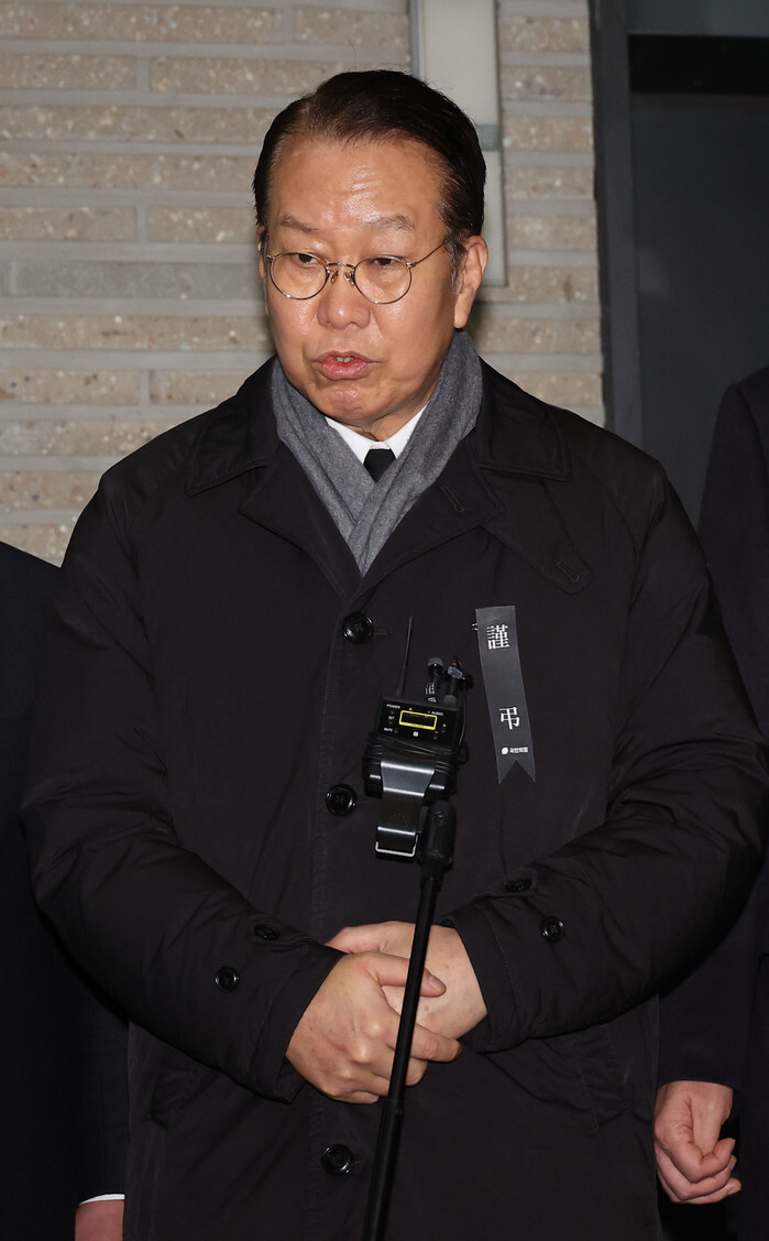 Kwon Young-se, chief of the ruling People Power Party's emergency leadership committee, speaks to reporters after attending a closed meeting at the party's headquarters in Seoul on Jan. 1, 2025. The committee is tasked with managing the political fallout from President Yoon Suk Yeol's impeachment. (Yonhap)