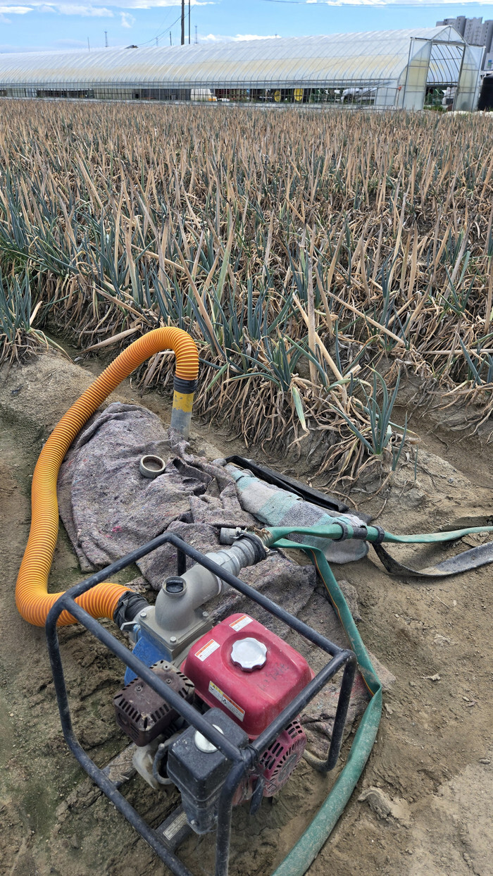 Water for agricultural use is cut off at a parched scallion field in Gangneung, Gangwon Province, northeastern South Korea, on Sept. 1, 2025, as the region is in the grip of a lengthy drought. (Yonhap)